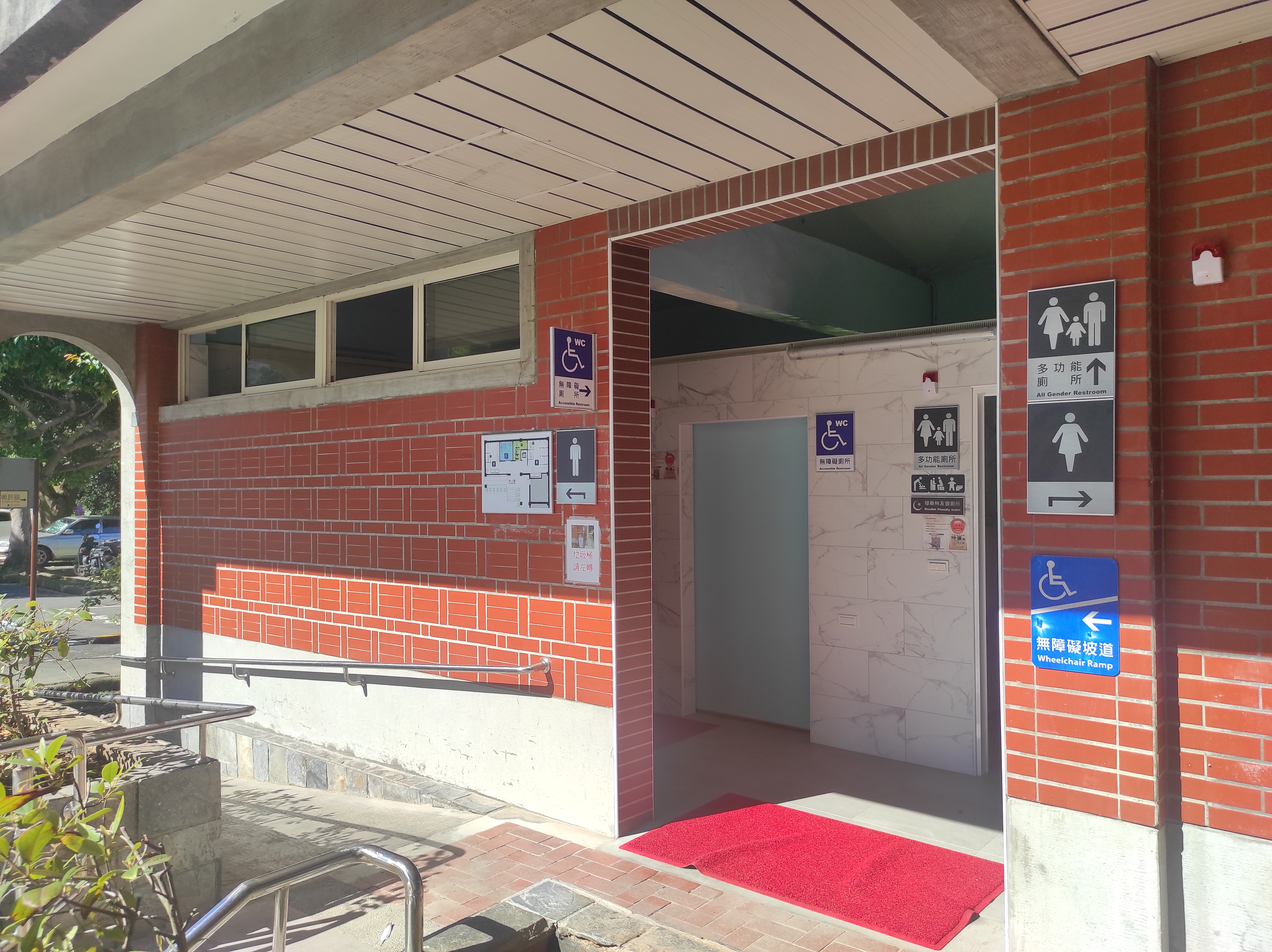 2、行動友善:蹲式廁所每間均加裝固定式扶手方便長者適用;室外設無障礙坡道完善、無障礙廁所設施,滿足行動不便者需求。