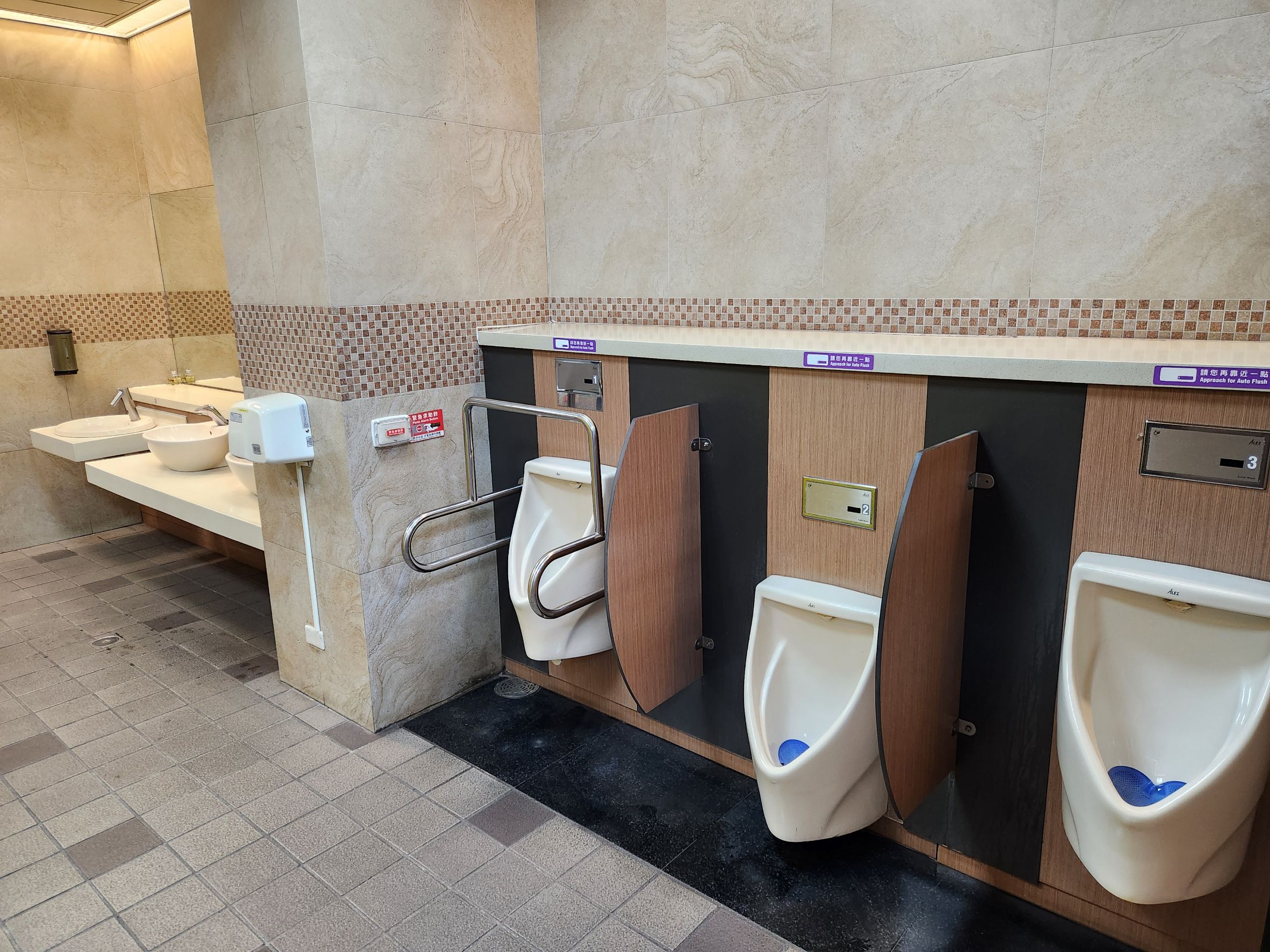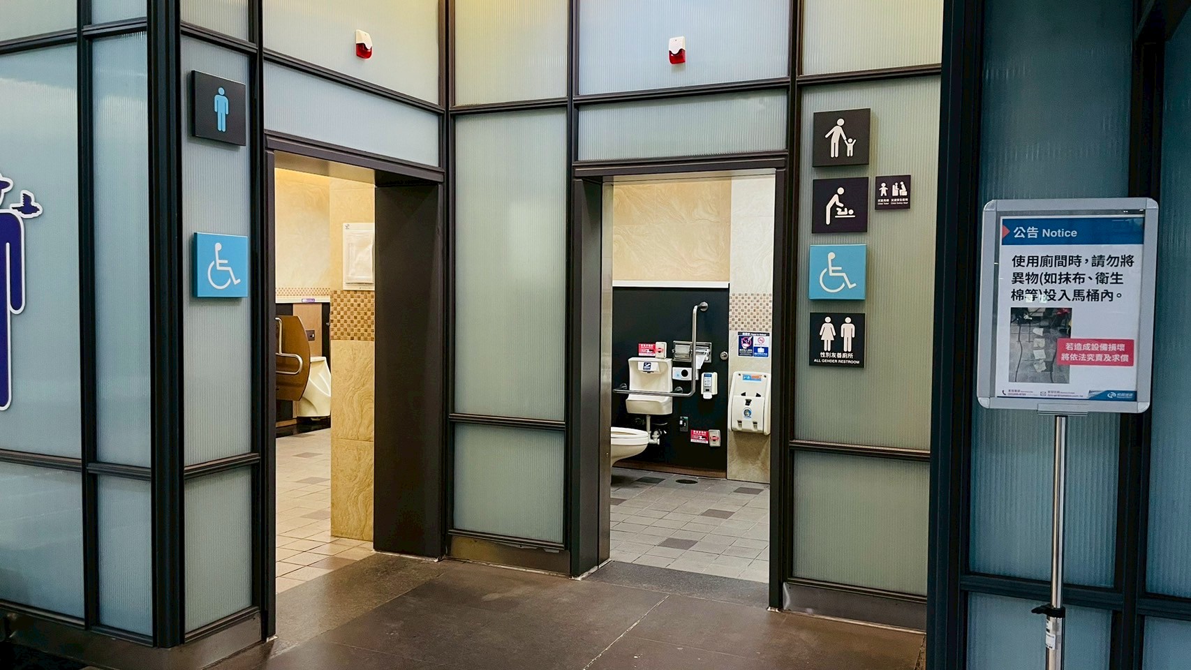 桃園機場捷運自 2017 年通車以來,八年來已服務超過 2 億旅運量人次,A12 機場第一航廈車站內共配置有三區公共廁所,包含男廁、女廁、無障礙廁間以及親子廁所,以符合民眾各種使用需求,並安排專責清潔人員定時清潔,以及專業清潔督導巡視廁內環境,並搭配桃園捷運「Q 潔淨立碼清」系統,每間廁間內均有張貼QRCODE 供旅客使用通報髒污狀況,讓廁間狀況都能夠獲得即時處理,讓旅客擁有良好的如廁環境。